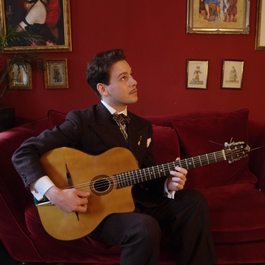 He focuses on Swing music, in the 1930's style of Django Reinhardt and Eddie Lang.